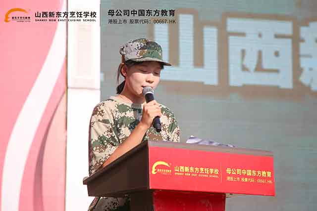 優(yōu)秀學員代表上臺發(fā)言,言辭間滿是對教官和老師的感激之情,并分享了軍訓帶給他的成長與收獲。她表示,通過這次軍訓,同學們不僅鍛煉了體魄,更磨煉了意志,收獲了深厚的友誼,今后將以全新的精神面貌開啟在山西新東方的學習與生活。
