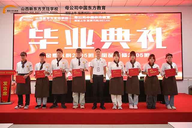 烘焙品牌,讓你們?cè)谛@里就能接觸行業(yè)前沿,畢業(yè)就能直接上崗。”他看向臺(tái)下的畢業(yè)生,語氣堅(jiān)定,“我希望你們記住,技能是你們最硬的‘底氣’——別人畢業(yè)還在投簡歷、焦慮就業(yè)時(shí),你們已經(jīng)帶著‘真本事’走進(jìn)優(yōu)質(zhì)企業(yè),這就是職校生的優(yōu)勢,也是山西新東方學(xué)子的競爭力。未來,要守住匠心、持續(xù)學(xué)習(xí),在崗位上做出成績,為餐飲行業(yè)添磚加瓦!”