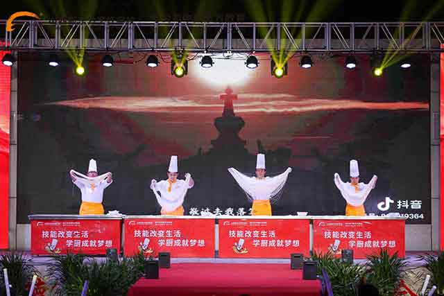 本次晚會緊扣“錦繡中華,盛世歡歌”主題,精心設(shè)置“匠藝承古,雅韻流芳”“青春逐夢,活力飛揚”“家國同心,盛世歡歌”三個篇章,將專業(yè)特色與藝術(shù)表演、思政教育與興趣引導深度融合。來自中烹、西點西餐、中式面點、形象設(shè)計等專業(yè)的師生們,化身舞臺上的“追夢人”,用多樣化的藝術(shù)形式詮釋職教魅力——中烹專業(yè)師生帶來的面藝表演,指尖翻飛間,普通的面團化作栩栩如生的花鳥魚蟲,既是傳統(tǒng)技藝的驚艷亮相,也是“匠心傳承”的生動詮釋;西點西餐專業(yè)的學子以創(chuàng)意擺盤為靈感,融入現(xiàn)代舞蹈元素,展現(xiàn)年輕一代對“時尚與專業(yè)”的獨特理解;形象設(shè)計專業(yè)的走秀表演更是將晚會推向高潮,學生們將傳統(tǒng)服飾紋樣與現(xiàn)代審美結(jié)合,每一套造型都彰顯著對“美”的探索,也傳遞著文化自信;此外,激情澎湃的歌曲演唱、活力四射的現(xiàn)代舞、驚險刺激的雜技表演輪番上演,一幕幕精彩瞬間如同璀璨星辰,照亮了學子們的逐夢之路,也讓現(xiàn)場觀眾沉浸在藝術(shù)與情感的雙重震撼中。