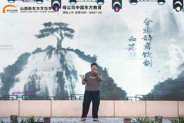 在全場期待的目光中,山西新東方烹飪學校校長于曉曦走上舞臺,宣布文藝晚會正式開始。致辭中,于校長深情回顧了學校在技能人才培養(yǎng)道路上的初心堅守與豐碩成果,從烹飪技藝的薪火相傳到現(xiàn)代職教理念的創(chuàng)新實踐,每一步都凝聚著對“培養(yǎng)高素質(zhì)技能人才”的執(zhí)著追求。她寄語全體師生,要以雙節(jié)為契機,既要深耕專業(yè)領(lǐng)域、錘煉過硬技能,更要傳承中華優(yōu)秀傳統(tǒng)文化,將個人成長與祖國發(fā)展緊密相連,讓青春在為國家貢獻、為行業(yè)賦能中綻放光彩。溫暖而莊重的話語,為整場晚會奠定了家國同心的情感基調(diào)。