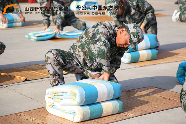 隨后,新生內(nèi)務(wù)訓(xùn)練展示開(kāi)始。教官一聲令下,學(xué)員們迅速行動(dòng)起來(lái),紛紛使出自己的絕招,細(xì)心快速地按標(biāo)準(zhǔn)整理被子。鋪平、對(duì)折、捏線、摳角,他們將一個(gè)個(gè)“豆腐塊”完美呈現(xiàn)在軍訓(xùn)場(chǎng)上,把良好的作息習(xí)慣在堅(jiān)持中養(yǎng)成。