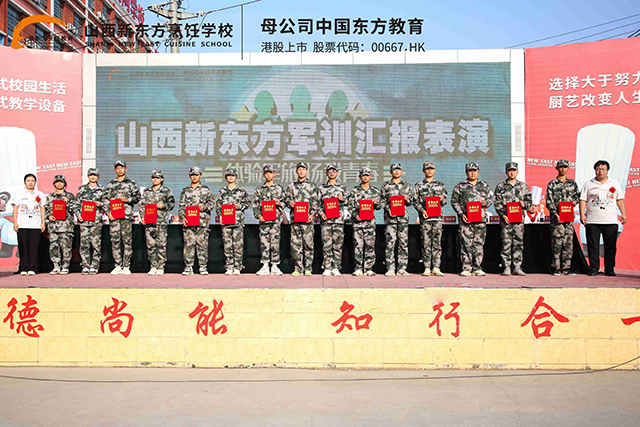 從清晨到夜晚,從忐忑到不舍。軍訓(xùn)過(guò)后的山西新東方學(xué)子,眼神中多了執(zhí)著與果敢,步伐里多了自信與堅(jiān)毅。他們用汗水與努力筑成最美好的綠色記憶,開(kāi)啟他們最難忘的學(xué)廚旅程。匯報(bào)表演結(jié)束之后,學(xué)校為表現(xiàn)優(yōu)異的班級(jí)以及優(yōu)秀學(xué)員頒發(fā)了榮譽(yù)證書(shū),以此鞭策他們繼續(xù)保持和發(fā)揚(yáng)這種精神風(fēng)貌。