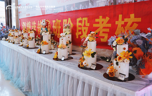 為了檢驗(yàn)學(xué)員這一段時(shí)間翻糖蛋糕制作的學(xué)習(xí)成果,今天,以“美”為主題的翻糖作品大聚會(huì)在西點(diǎn)樓如期舉行。這不僅僅是一場視覺的盛宴,更是一次翻糖蛋糕制作技藝的競技與較量。走進(jìn)考核現(xiàn)場,翻糖花卉作品如同藝術(shù)品般琳瑯滿目,它們以獨(dú)特的姿態(tài)和魅力,展示著烘焙藝術(shù)的無限可能與創(chuàng)意。