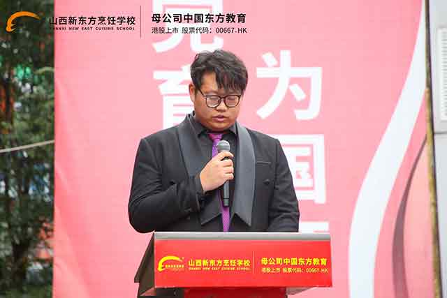 班主任的話語里,滿是牽掛與期許。“剛?cè)雽W(xué)時(shí),你們有人連炒雞蛋都會(huì)糊鍋,有人捏裱花袋時(shí)手不停抖,如今卻能端出精致宴席、做出層次分明的甜品,這份成長(zhǎng)讓我由衷驕傲。”他站在臺(tái)中央,目光掃過臺(tái)下一張張熟悉的面孔,語氣懇切,“走出校園,要把在校學(xué)到的技能練扎實(shí),把對(duì)烹飪的熱愛揣在心間,保持學(xué)習(xí)的熱情,在行業(yè)里穩(wěn)穩(wěn)站穩(wěn)腳跟——記住,山西新東方永遠(yuǎn)是你們的后盾。”