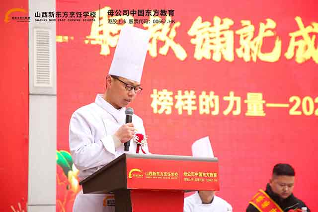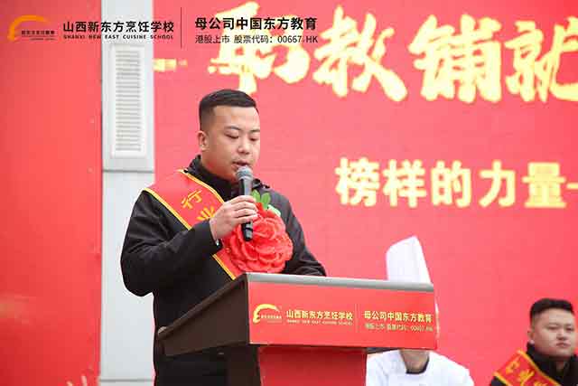 報(bào)告會(huì)尾聲,山西新東方烹飪學(xué)校校長(zhǎng)助理孟助作總結(jié)致辭。他指出,2026年是國(guó)家大力發(fā)展現(xiàn)代職業(yè)教育、加快建設(shè)技能型社會(huì)的關(guān)鍵之年,也是山西省深化產(chǎn)教融合、強(qiáng)化技能人才培養(yǎng)、全力推動(dòng)高質(zhì)量就業(yè)的重要一年。作為三晉大地職業(yè)教育的骨干力量,山西新東方將始終堅(jiān)守立德樹(shù)人、育訓(xùn)結(jié)合、就業(yè)為本的辦學(xué)理念,持續(xù)優(yōu)化專業(yè)布局、強(qiáng)化實(shí)訓(xùn)教學(xué)、深化校企合作,不斷完善入學(xué)—培養(yǎng)—實(shí)習(xí)—就業(yè)—創(chuàng)業(yè)全鏈條育人服務(wù)體系,以更優(yōu)質(zhì)的教育教學(xué)、更貼心的成長(zhǎng)服務(wù)、更廣闊的發(fā)展平臺(tái),為每一位學(xué)子成才圓夢(mèng)保駕護(hù)航,讓大家真正實(shí)現(xiàn)學(xué)一技之長(zhǎng)、擁一生保障、創(chuàng)一番事業(yè)。他勉勵(lì)全體在校學(xué)子以優(yōu)秀校友為榜樣,堅(jiān)定技能成才、技能報(bào)國(guó)的理想信念,勤學(xué)苦練、篤行不怠,練就過(guò)硬本領(lǐng),錘煉品德修為,用匠心守護(hù)初心,用技能成就夢(mèng)想,以一技之長(zhǎng)書(shū)寫(xiě)人生出彩、未來(lái)閃光的青春篇章。