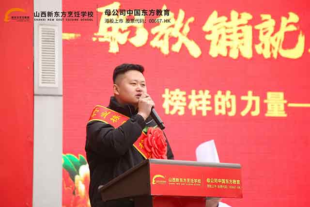 ▲山西新東方職業(yè)學(xué)校校長(zhǎng)助理發(fā)表重要講話