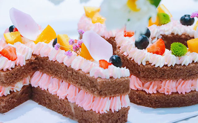 °蛋糕裱花主要材料是蛋白、奶油、果醬、水果等,制品裝飾精巧,圖案美觀,相當講究,通過專業(yè)的培訓才行。