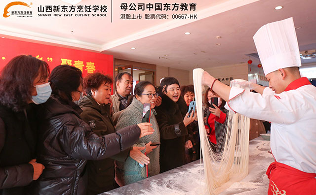 為了歡迎各中學(xué)老師一行,我校學(xué)生專門開展了一系列頗具觀賞性的面食特技表演,學(xué)生們嫻熟自如的表演和精湛的技藝,令領(lǐng)導(dǎo)組拍案叫絕。
