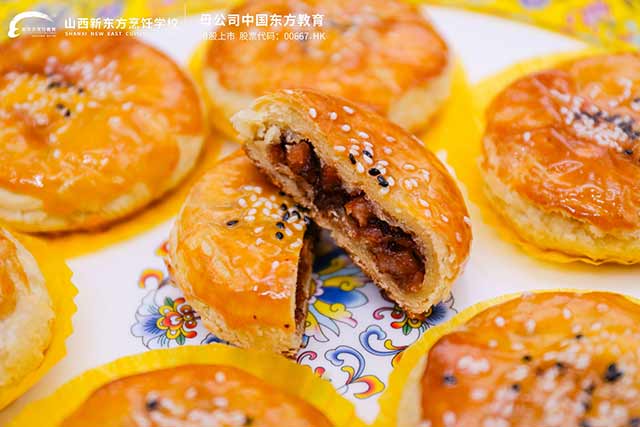 14、烤箱180度,中層,烤20分鐘左右。(具體時間溫度,根據(jù)自家烤箱調(diào)整)新鮮出爐的老婆餅,層層酥脆,掉渣渣,中間是軟糯的糯米餡,軟糯香甜的,非常好吃。