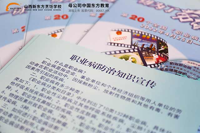 為認真貫徹黨中央、國務(wù)院關(guān)于職業(yè)病防治工作的決策部署,深入宣傳《職業(yè)病防治法》,普及職業(yè)病防治知識,提高教師的健康意識和自我保健能力,山西新東方烹飪學校開展了“職業(yè)病防治法宣傳周”活動。